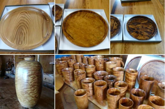 写真上段の左は木目が粗く成長が早い木などで軽く油分を多く含まない屋久杉材です、こちらは軽く強度も低く価値としては一番低くなります、ただこれが一般の主流品で普通の工芸品の屋久杉です。