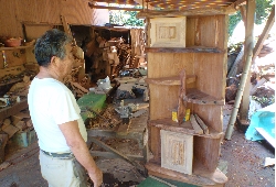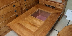 開き戸にも拘り、一つ一つ彫りの調整や兆番の調整を行いながら、「なかなか難しくうまくいかないんだよなぁー。」と言いながら細部まで拘る、さすが職人。