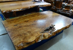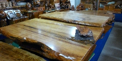 屋久島でもここまでの質の物を探すのは困難、長さ約3メートル、直径3メートル近くの大木からおよそ3枚を板取します。もう既に2枚は完売、こちらは最後の1枚を加工したばかり。こちらはかなり高額ですが見るのはタダです、他と見比べてみるのも面白いと思いますよ。 ちなみにお値段なんと450万円!値引き交渉のお助けしますよ。
