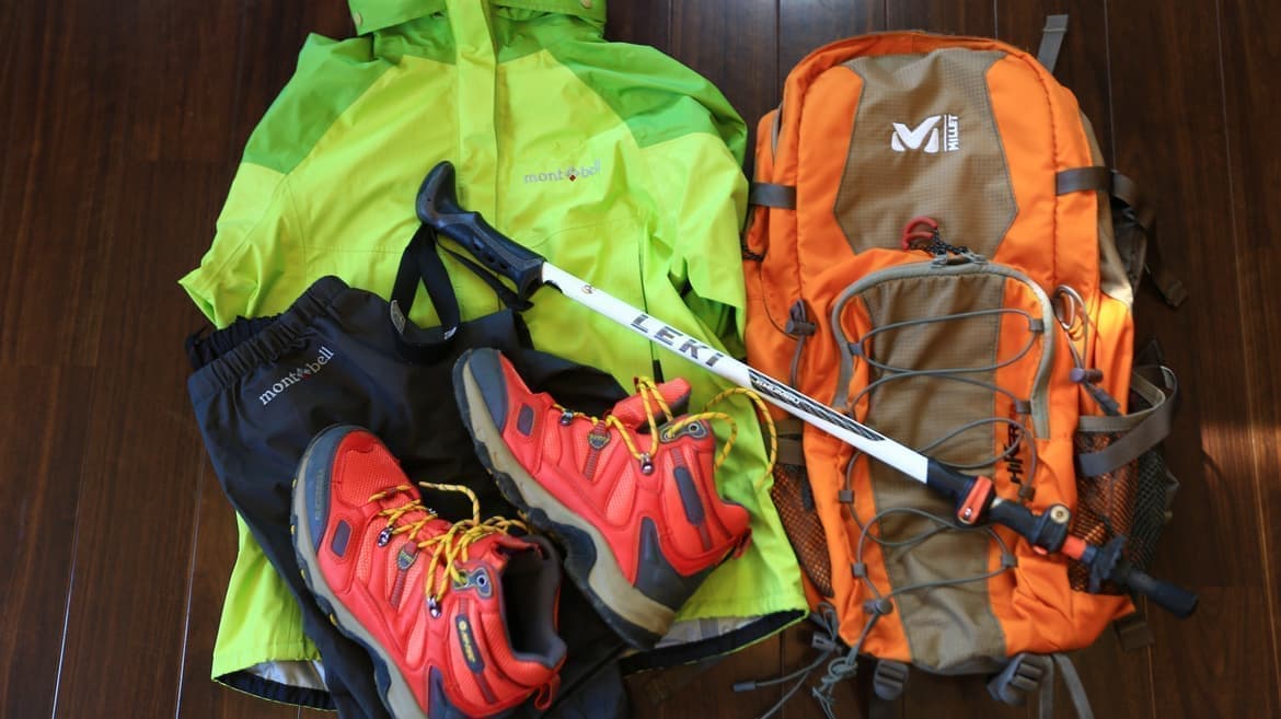 当方ツアー参加者にはレインウェア、シューズ、ザック、ザックカバー、トレッキングポールをセットで4,000円にてレンタル致します。