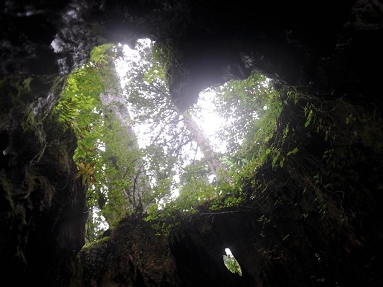 縄文杉の断面はUの字形で展望台より見る裏手、傾斜部上部はウロになっておりそちらから見ると縄文杉とは思えない。