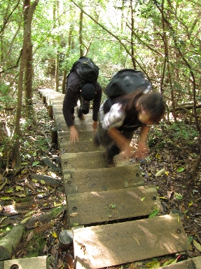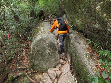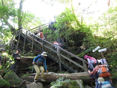 荒川登山口標高600メートルよりトロッコ道を8キロ歩く、大株歩道入り口標高930メートルより4キロ標高1,280メートルまで一気に登る。大株歩道からが本当の登山道、途中ウイルソン株や大王杉、夫婦杉などを経て縄文杉へ。帰りのトロッコ道が達成感の後でかなりつらい。
