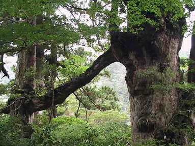 根本から胴にかけては太くゴツゴツした風貌、上部はいくつもに枝分かれその姿は杉のそれとは異なる。
