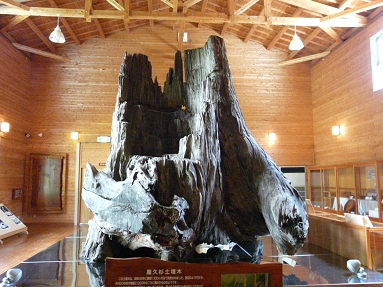 安房からヤクスギランド線を少し上るとあるなかなか面白い施設、屋久島町が運営しているがなかなか良く出来ている。そとにはトロッコの実物や本物の屋久杉の橋など展示、また宇宙屋久杉なるものも植林されている、本館では縄文杉の枝が展示されているがこれまたスゴイ。本館内はスリッパをはかずにツガの木のブロックの感触を感じるのがオススメ。