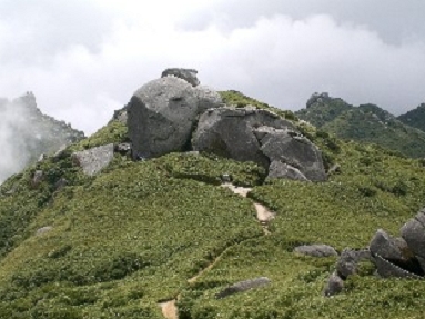 屋久島トップ3を「三岳」と呼びます、「宮之浦岳」、「永田岳」、「栗生岳」が三岳です、そこにあと1,800メートル級の山4山「翁岳」、「安房岳」、「黒味岳」、「投石岳」を加え奥岳と呼びます。
