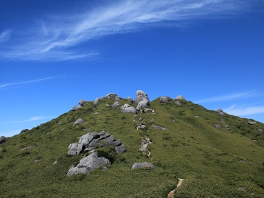 花之江河手前付近から高盤岳のトーフ岩や黒味岳、投石平、岳から安房岳、翁岳と絶景が続きます。ヤクシマダケのブッシュを抜けるともうそこは目的の「宮之浦岳」出来るものなら天気に恵まれたい、屋久島で好天を望むのは難しいが日々精進して祈りを。