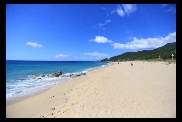 両砂浜は各々全長2kmもあり、真っ白な花崗岩の砂浜でとても美しい砂浜です、砂目が粗く空気を地中に多く含む事から孵化率が異常に高いのが特徴です。