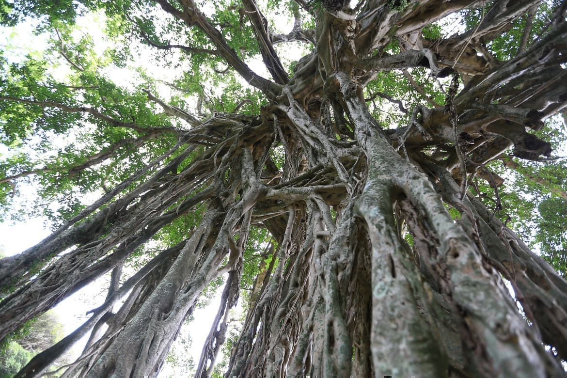 中間地区の中心にあり中間地区のシンボルの古樹、ガジュマルは亜熱帯の植物で絞め殺しの木とも呼ばれる活発な樹木、特異な性質を持つイチジクの仲間。